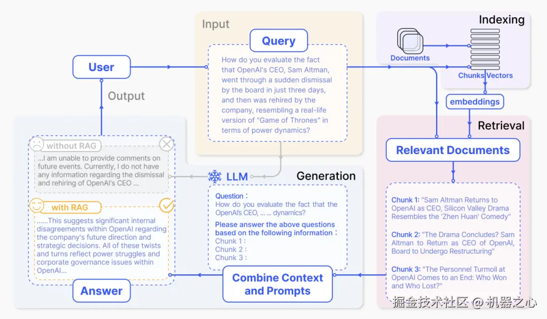 一个应用于问答任务的 RAG 典型实例,图源:arXiv:2312.10997