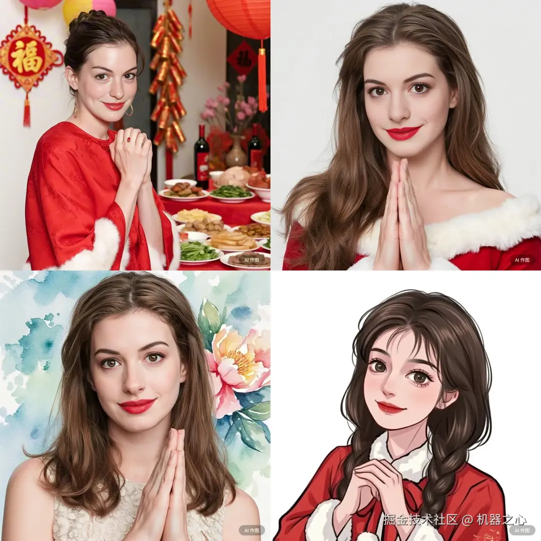 视觉设计之外,iRAG 也可能会成为许多智能体的核心组件。简单想象一下,我们就能为其找到大量有价值的应用场景,包括基于现实场景创建游戏世界、根据老照片甚至画像进行人像复原、让我们和喜欢的动漫人物同框合影,还有生成靓丽帅气的春节相亲照…… 就正如基于文本和数据库的 RAG 让大量 AI 应用变得更有价值一样。