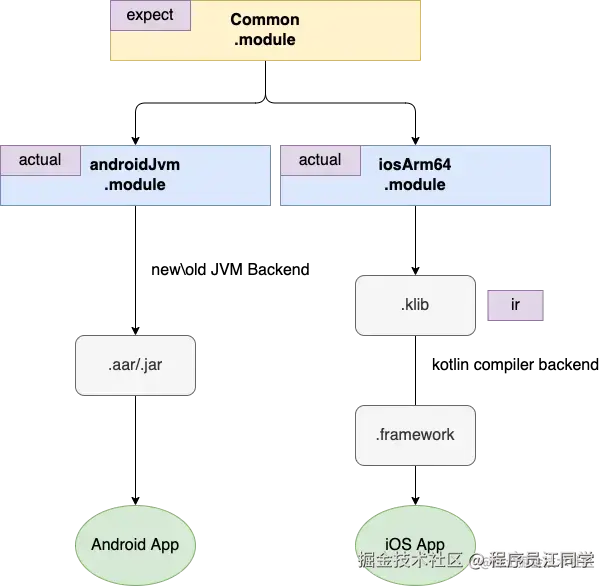 - iOS 与 KMM 库关系:iOS 依赖.h和二进制文件,KMM 通过cinterop等工具实现与 OC 的互操作,将.klib处理成 iOS 可用的.framework。
