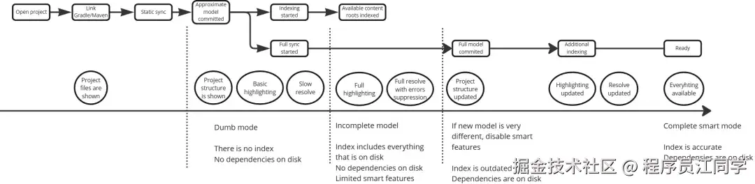 打开项目时也许是开发者需要等待的最常见场景。IntelliJ IDEA 需要加载和同步项目、执行索引编制以及完成许多其他小任务才能启用所有实用功能。