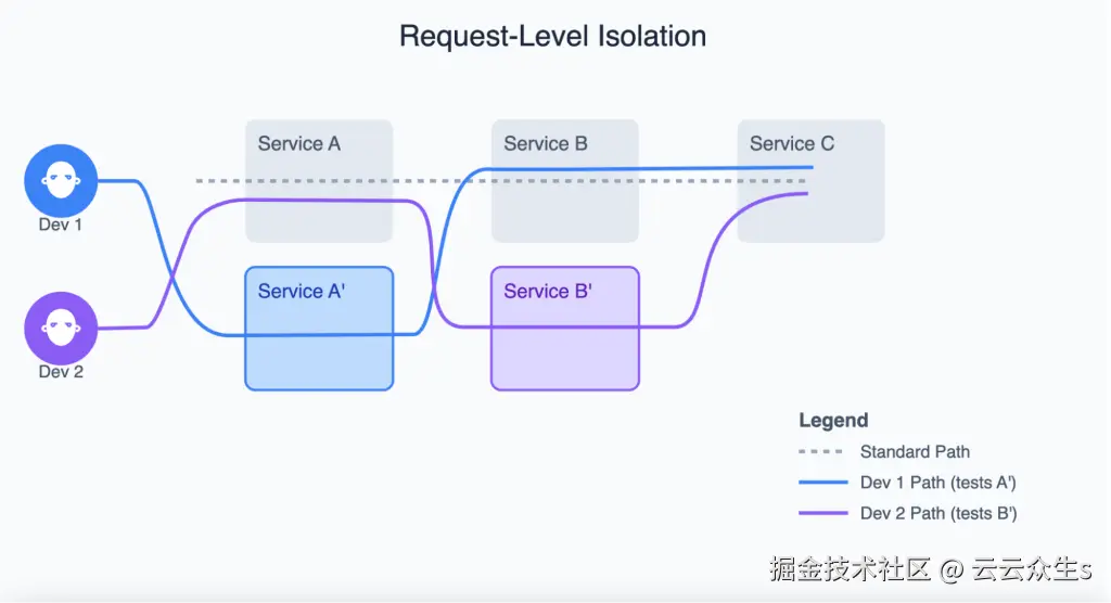 像Uber、Lyft 和 DoorDash 等领先科技公司已经开创了一种不同的方法。他们没有复制整个环境,而是转向了一种在共享环境中隔离请求的模型。这种根本性的转变带来了几个关键优势: