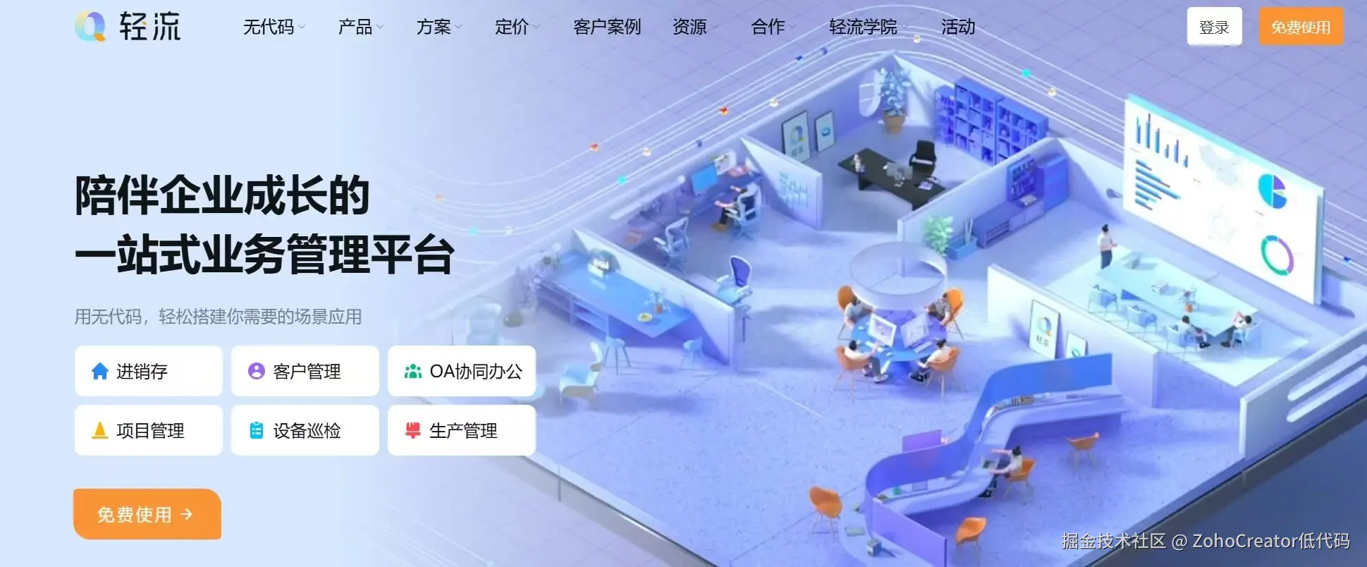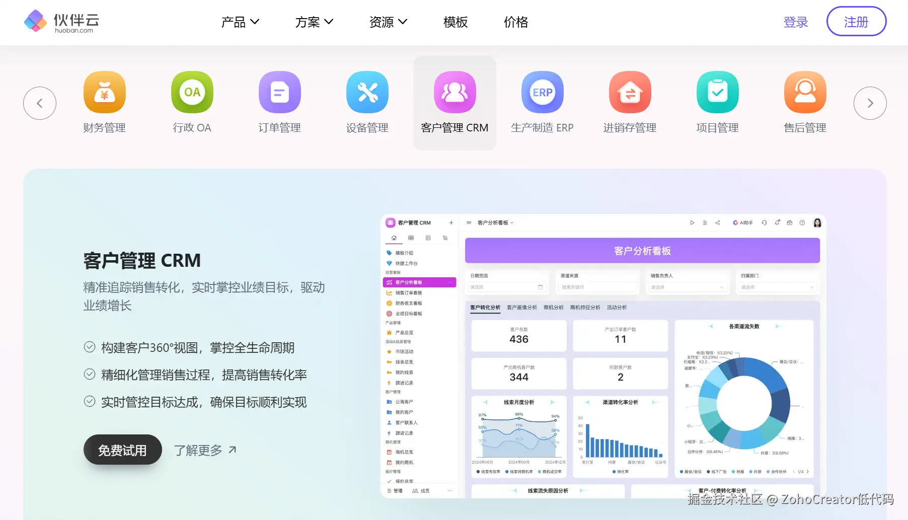 伙伴云是一款面向企业的全栈式低代码平台,特别强调CRM(客户关系管理)解决方案。