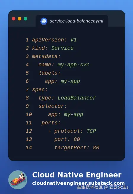 正如你所看到的,与上一节中的服务唯一的区别在于spec.type = LoadBalancer中的服务类型。