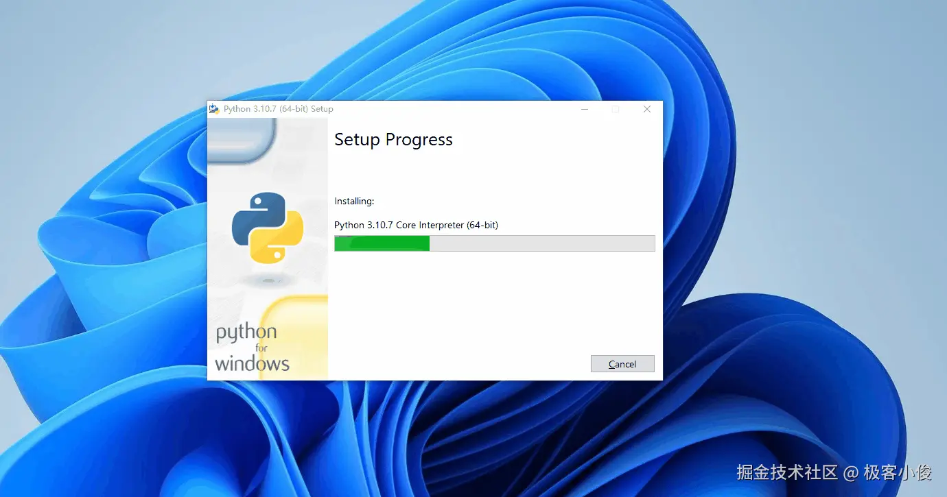 然后点击Install开始安装Python