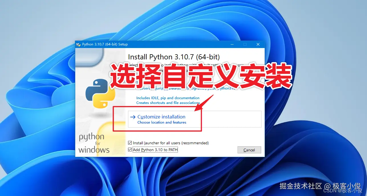 这里直接点击下载好的python-3.10.7-amd64.exe开始安装