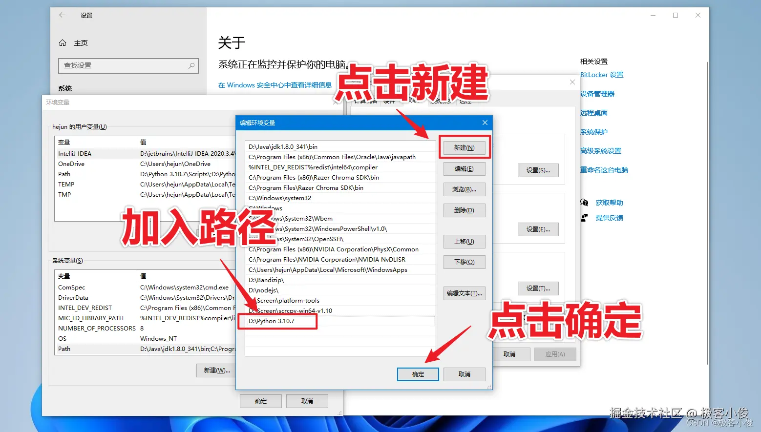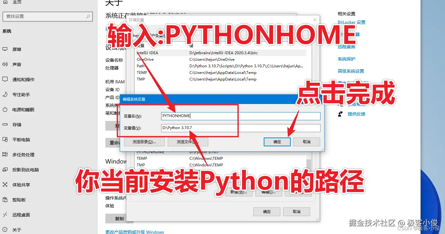 然后把你安装Python的路径添加到Path当中,这里我的路径为:D:\Python 3.10.7 最后点击确定即可!