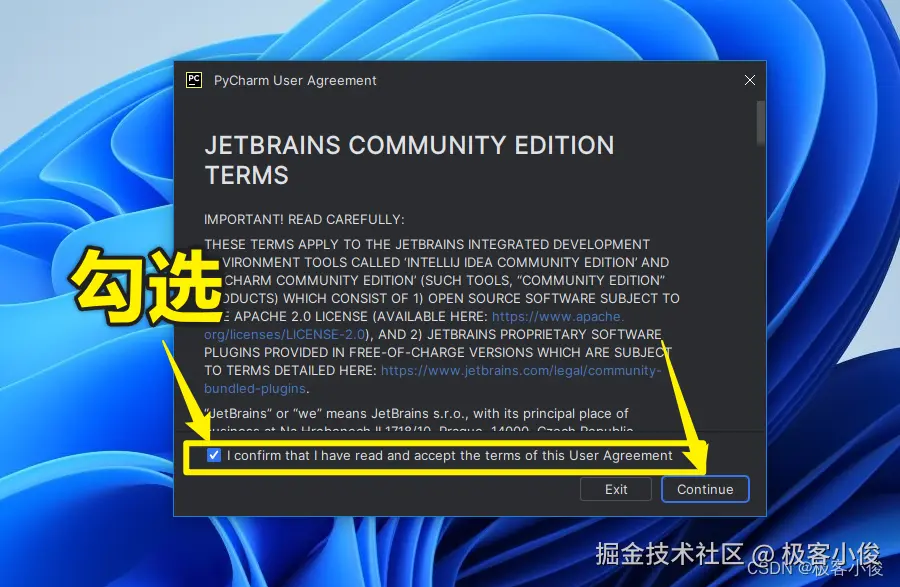 勾选I confirm that I have read and accept the terms of this User Agreement