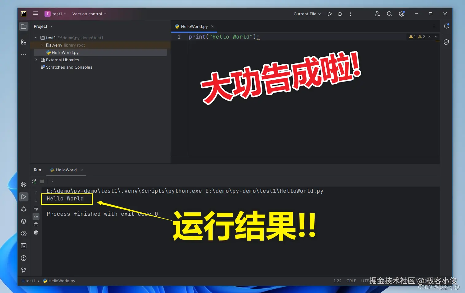 当前项目文件夹下有一个名为.venv的目录,新手暂时不用管它!