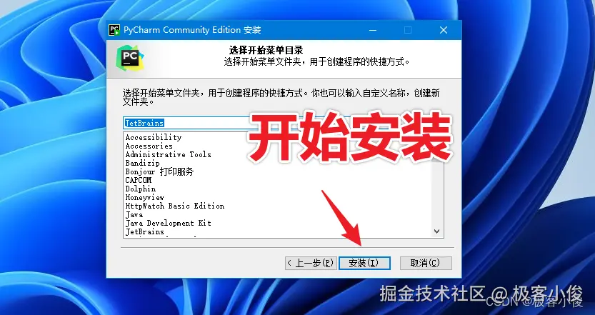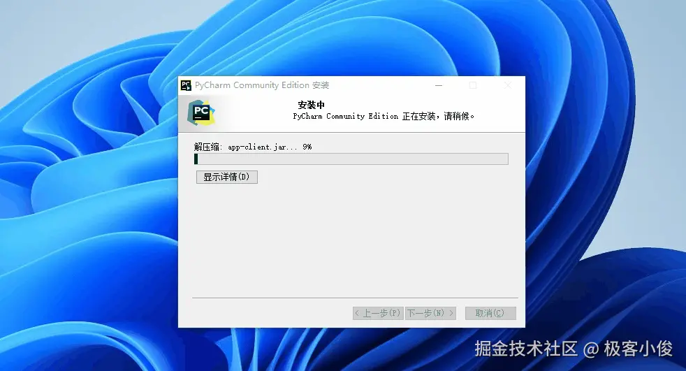 最后点击安装即可开始安装PyCharm