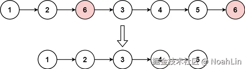 输入: head = [1,2,6,3,4,5,6], val = 6