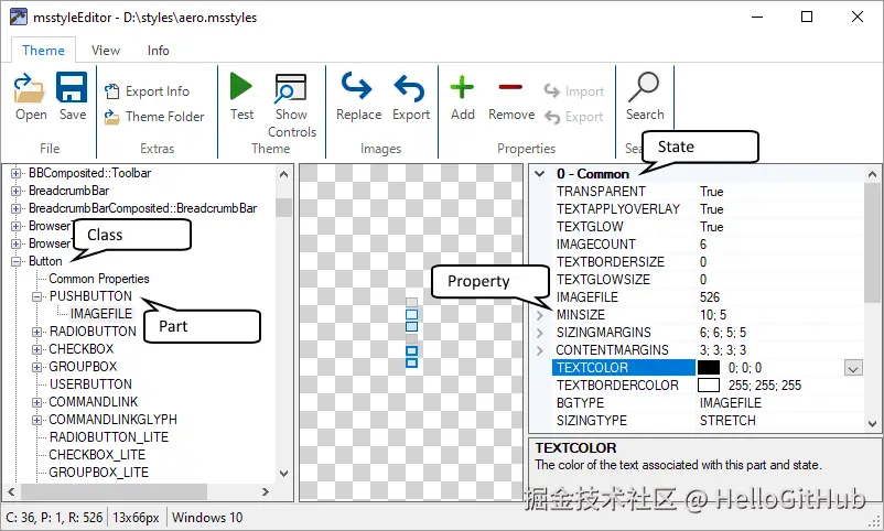 3、msstyleEditor:开箱即用的 Windows 视觉样式编辑器。这是一款用于编辑 Windows 视觉样式(.msstyles 文件)的工具,兼容 Windows 7、8、10 和 11 系统。它无需安装、开箱即用,支持快速查看所有组件并修改其属性,轻松自定义主题样式。