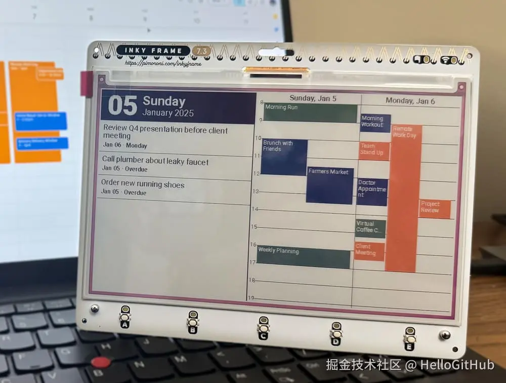 36、inky-dashboard:电子墨水屏的待办事项和日历管理工具。这是一款低功耗的电子墨水屏待办事项和日历管理工具,硬件采用 Raspberry Pi Pico W 和 Inky Frame 7.3 英寸七色电子墨水屏,同时使用 LVGL 实现界面布局,支持多种颜色显示、待办事项、日历同步等功能。