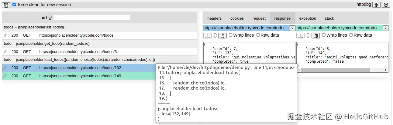 23、httpdbg:轻松捕获 Python 程序中 HTTP(S) 请求的工具。该项目是用于帮助开发者调试 Python 程序中的 HTTP(S) 请求的工具。通过 pyhttpdbg 命令运行程序,即可在浏览器中查看发出的 HTTP 请求,支持脚本运行、交互式控制台、单元测试多种运行模式。