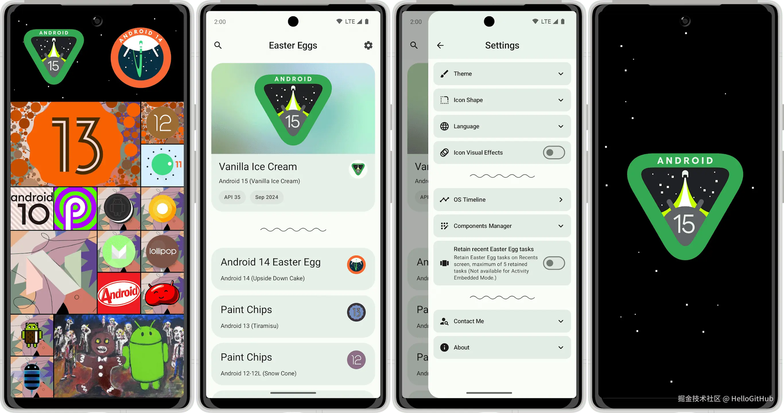 19、AndroidEasterEggs:Android 系统彩蛋大全。该项目收集了各种 Android 系统彩蛋,包含完整的代码和体验等功能。来自 @p0ssword 的分享