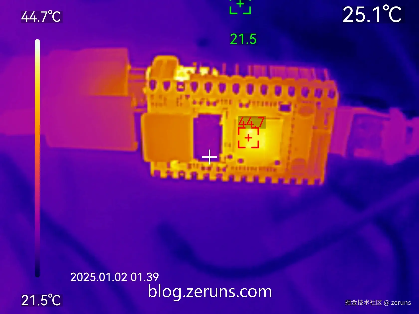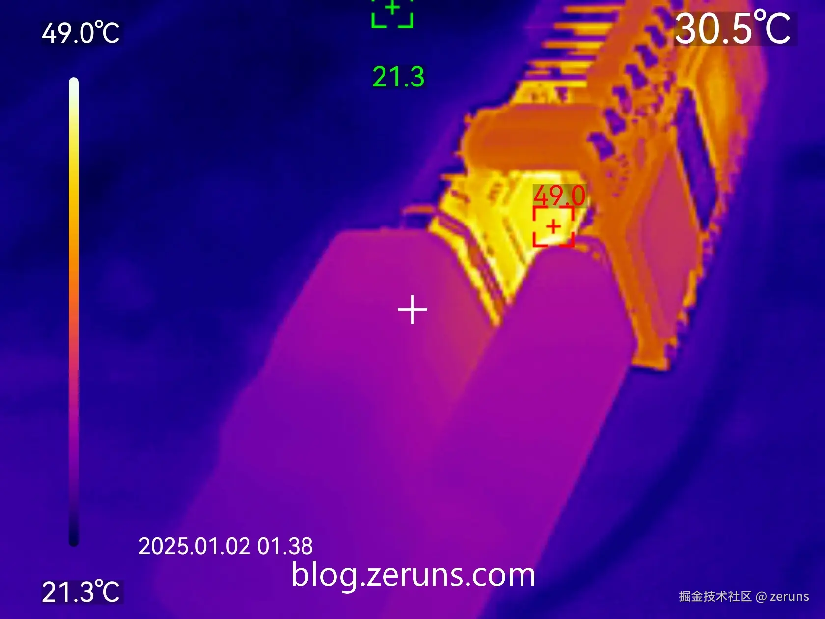 NanoKVM Lite版 插入网线和HDMI后工作一段时间的热成像图,室温21度左右,