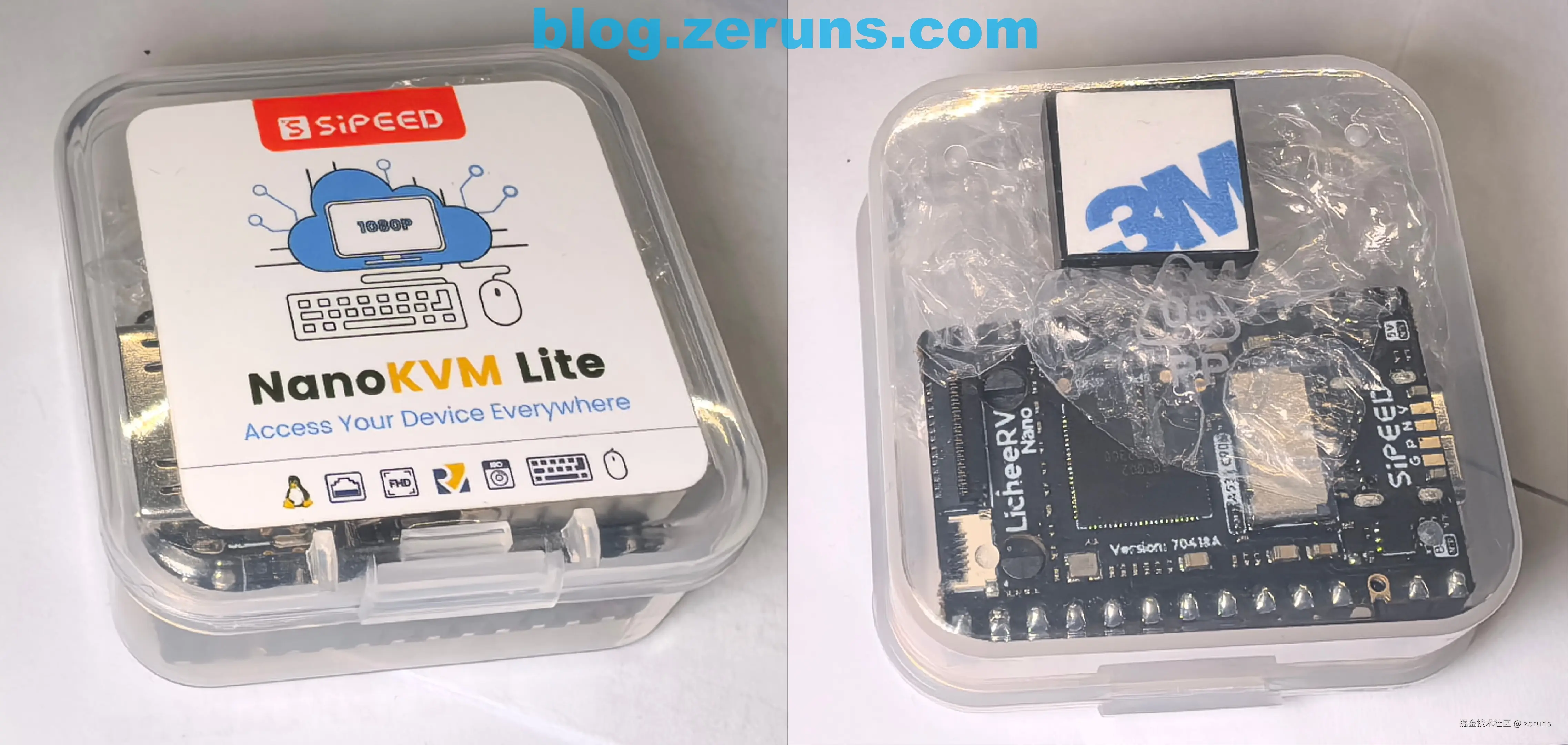 Lite版和Full版我都买了,下图是Lite版的,一个小的透明盒子装着,里面有NanoKVM和一个带导热双面胶的散热片