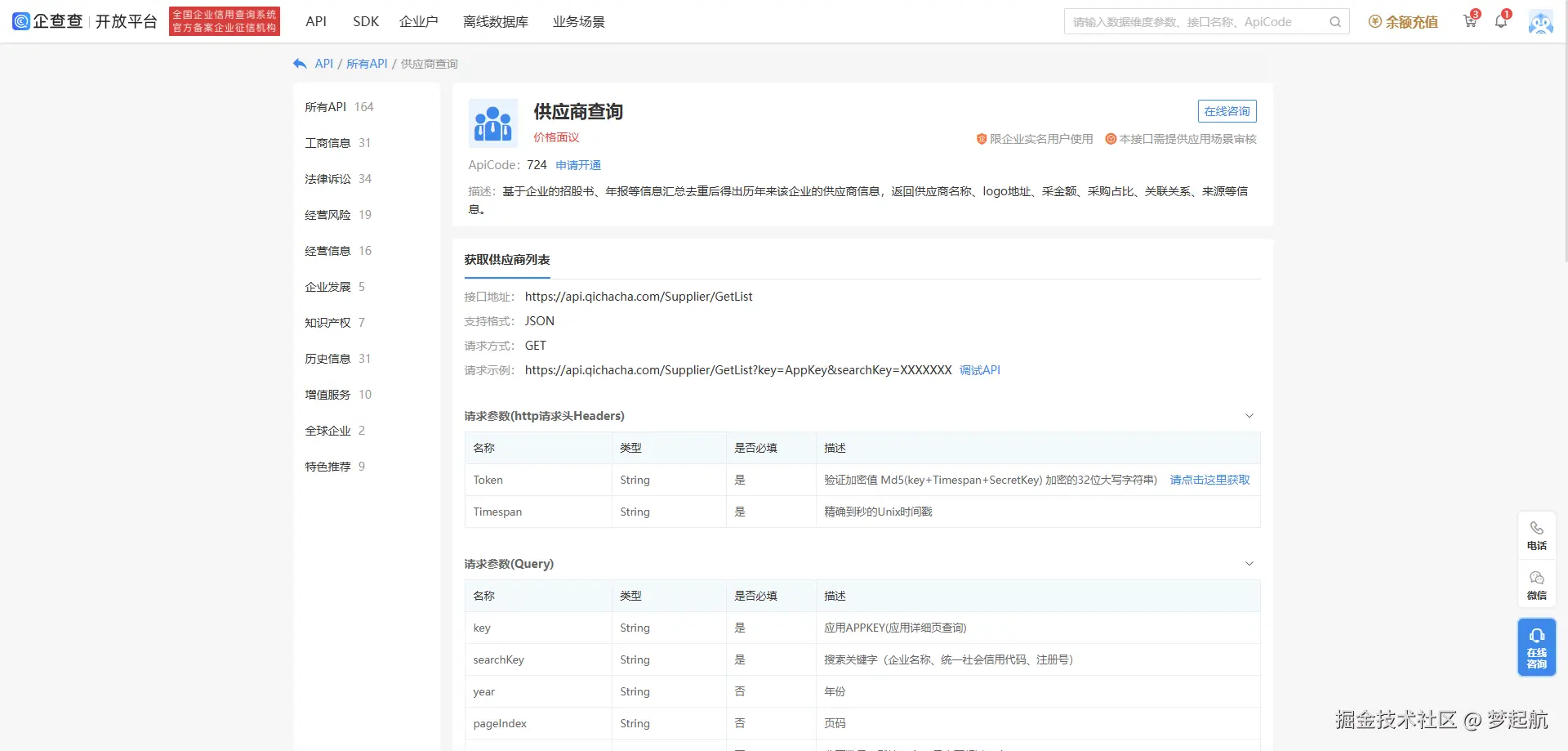 开放平台专门提供接口API服务,这对于想要做功能个性化开发的简直就是天大的福音,而且里面涵盖了多种多样的接口,完美的涵盖了几乎所有公司信息,公司与公司关联关系的信息,这对于想想要自建一个供应链网络的人来说,如有神助。