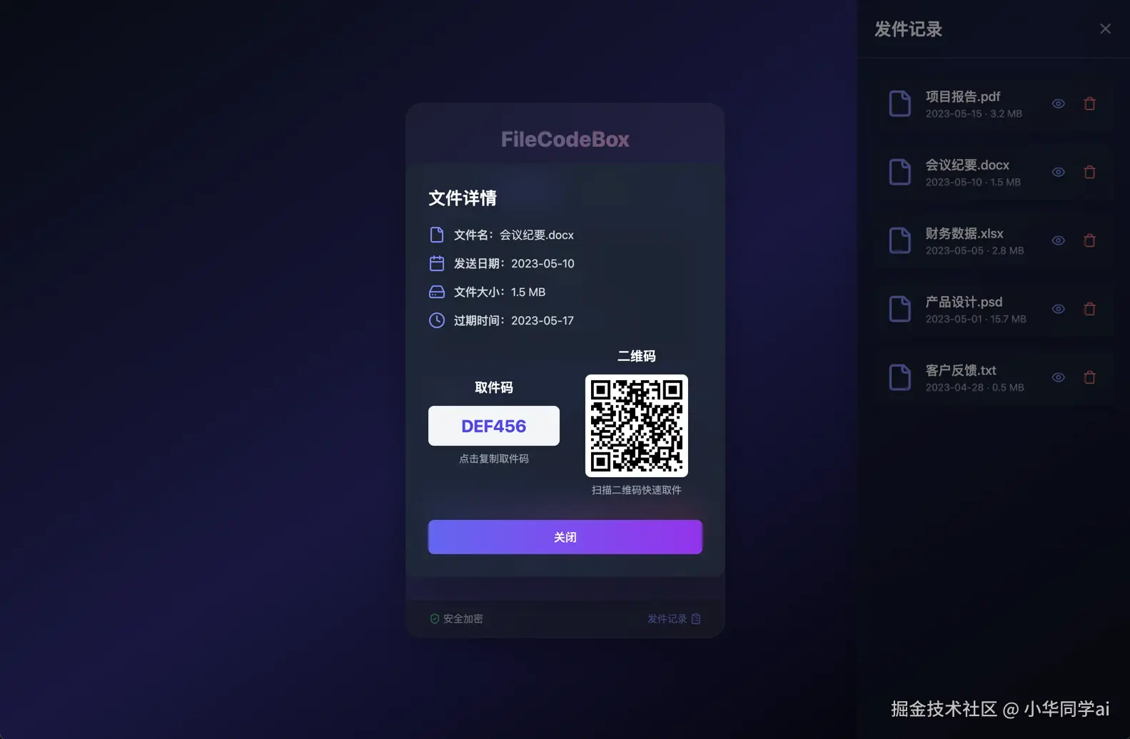 FileCodeBox作为一款开源的在线文件共享工具,凭借其简单易用、安全可靠的特点,在多种应用场景中发挥着重要作用。相信随着项目的不断完善,FileCodeBox将会成为更多用户在文件共享领域的首选工具。