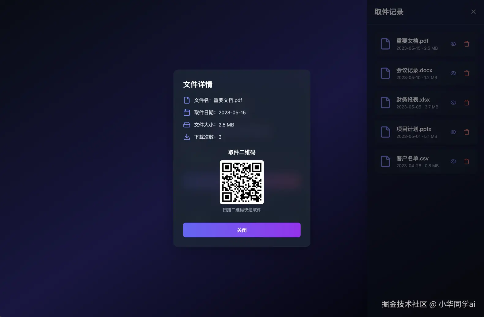 - 下载:接收者获取文件后,可以在这里进行下载操作。
