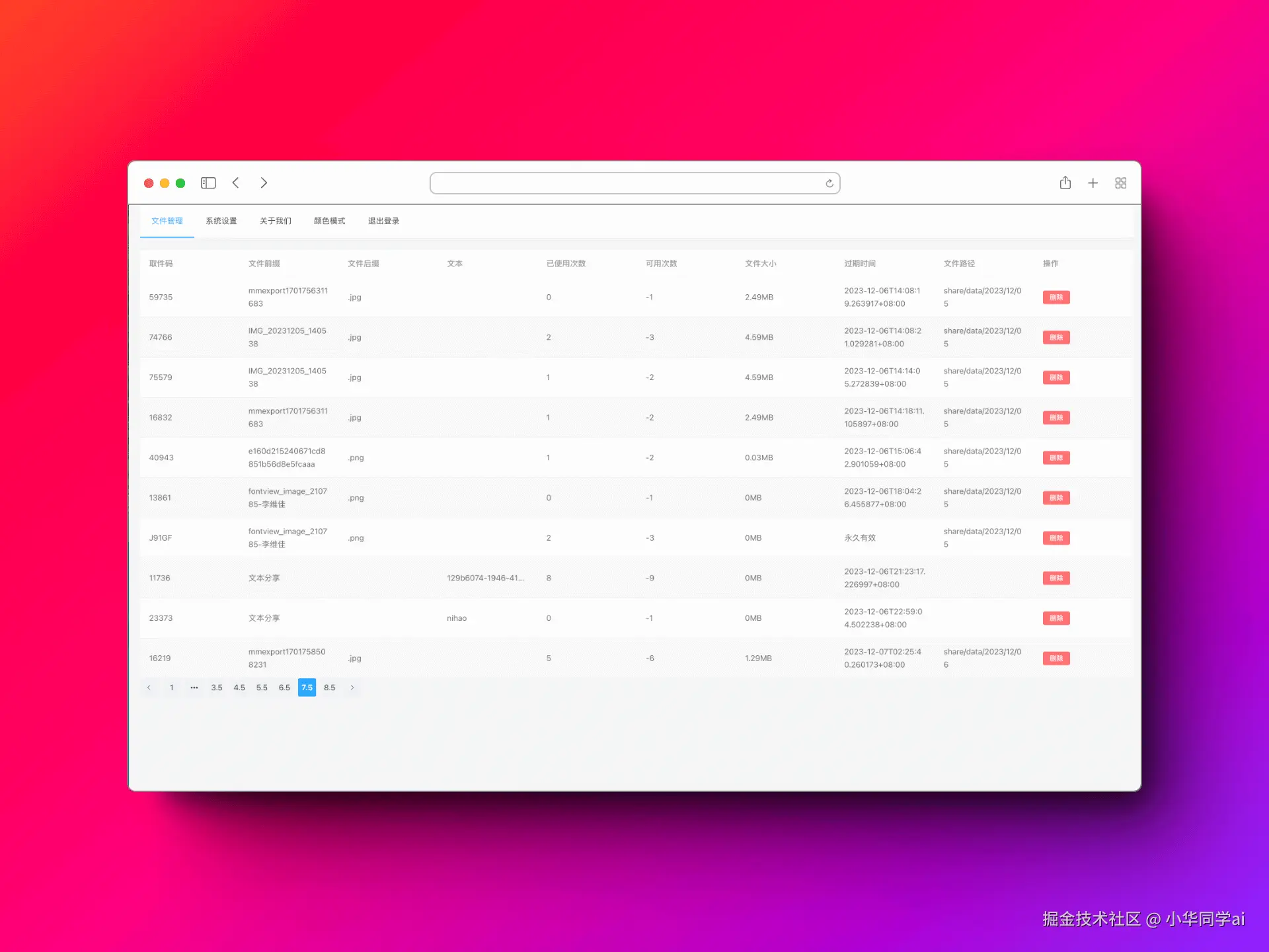 - 文件管理:方便用户对已经上传的文件进行管理,比如查看文件的相关信息、删除不需要的文件等。