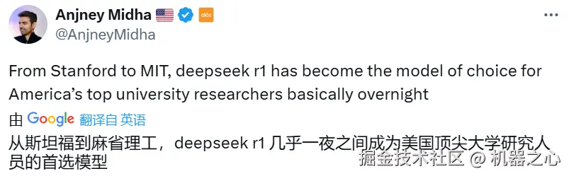 毕竟,正如 a16z 合伙人、Mistral 董事会成员 Anjney Midha 说的那样:从斯坦福到麻省理工,DeepSeek-R1 几乎一夜之间就成了美国顶尖大学研究人员的首选模型。