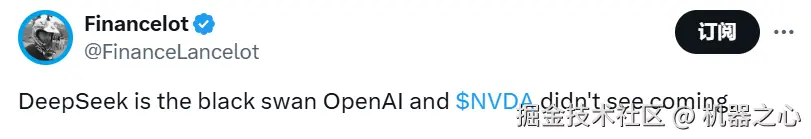 甚至有网友认为 DeepSeek 是 OpenAI 与英伟达都未曾预见的黑天鹅。