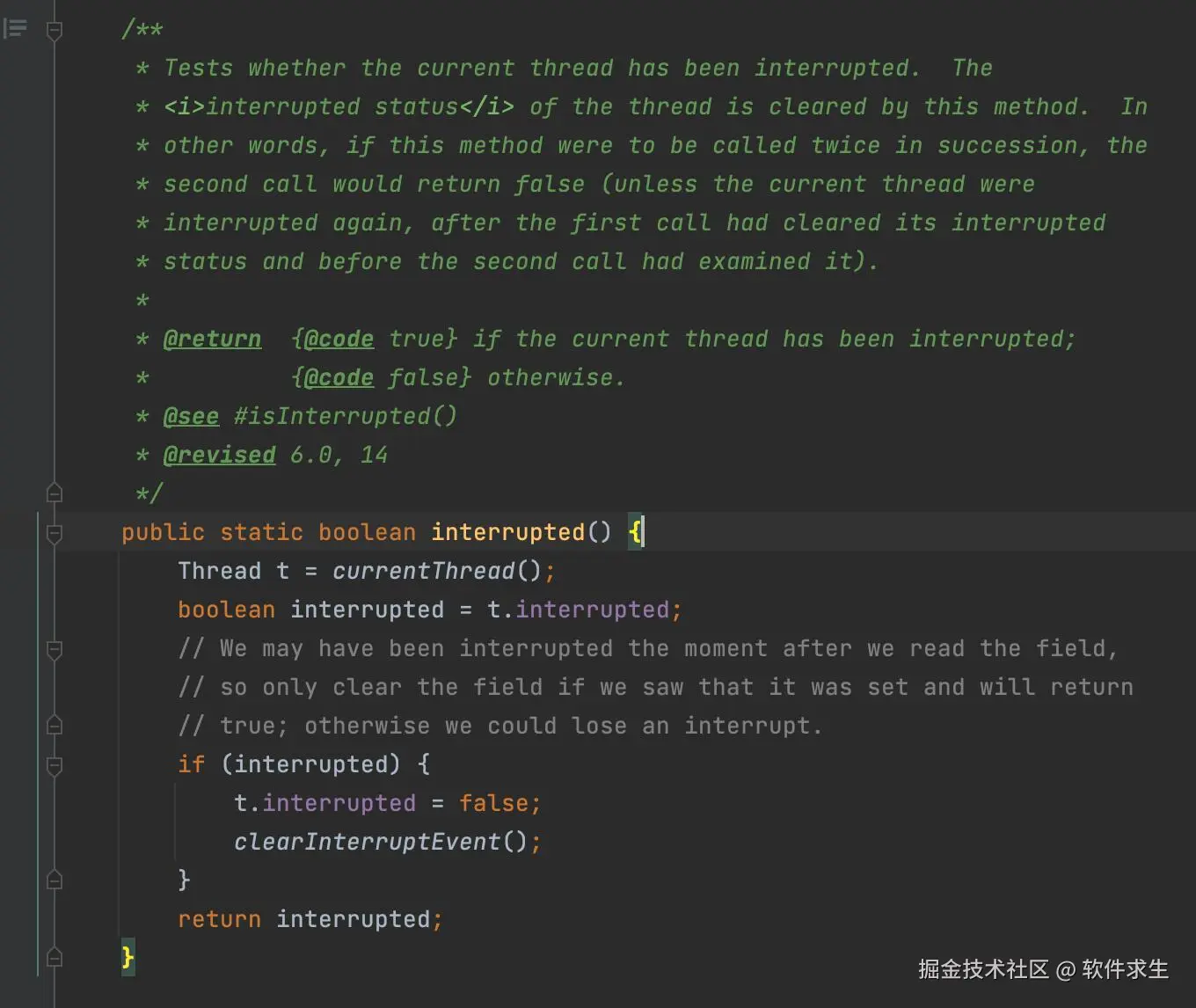 而interrupted和isInterrupted就是用来帮助我们判断线程是否已被中断的两个工具。不过,它们虽然都与中断相关,但在实现和语义上有一些关键的区别。