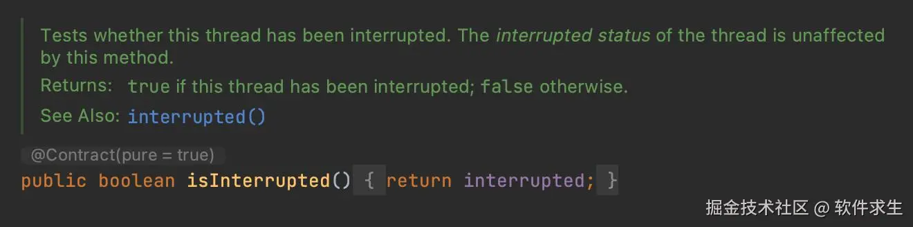 - isInterrupted方法不会清除线程的中断标志,只是返回该线程当前的中断状态。