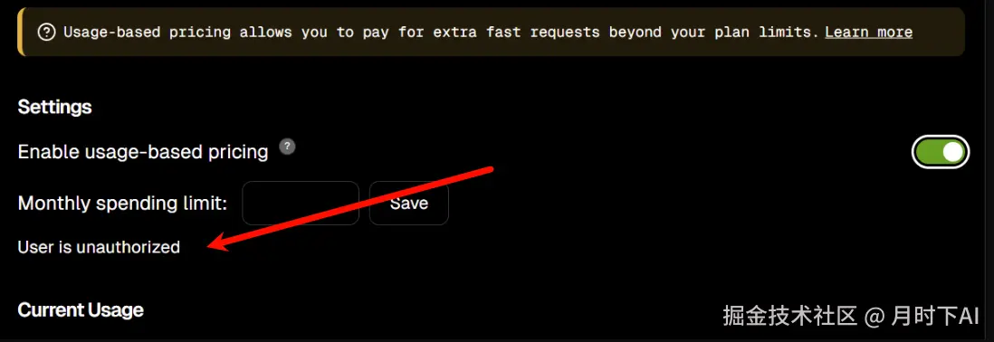 Pro账号在尝试开关Enable usage-based pricing会提示 User is unauthorized