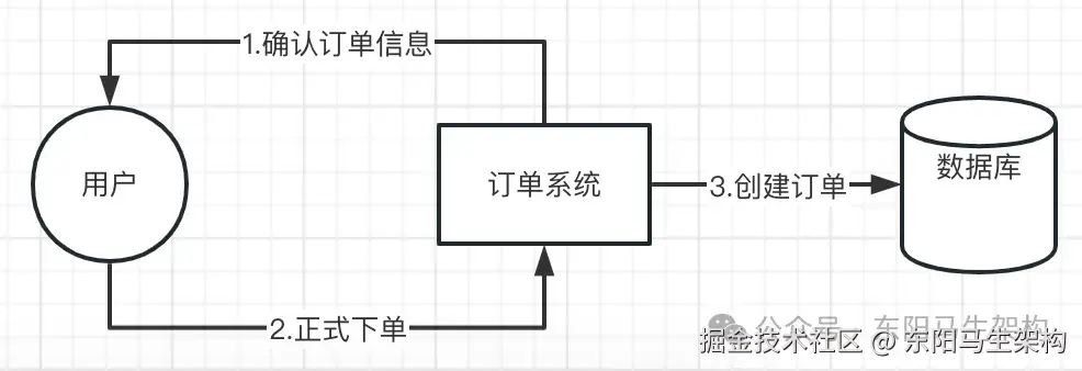 于是订单系统最核心的一个环节就出现了,就是根据APP传来的各种信息完成订单的创建。此时需要在数据库中创建对应的订单记录,整个过程如下图示: