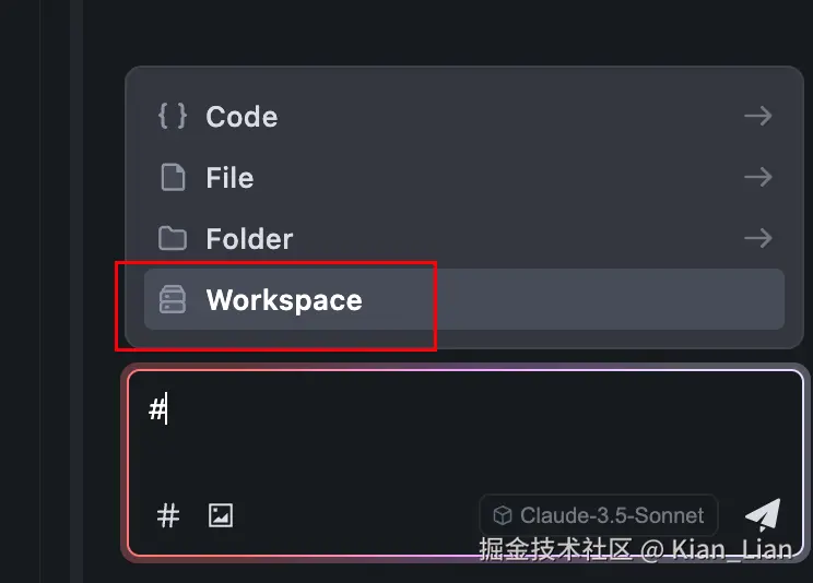 选择Chat模式并在输入框输入#并选择Workspace向AI发起问答