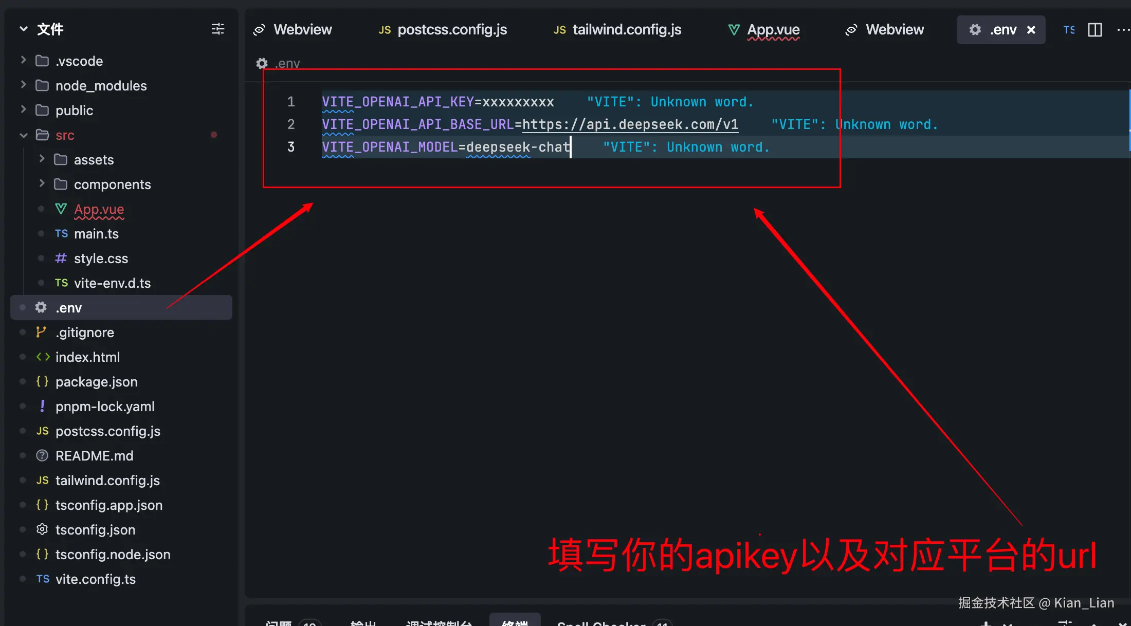 当它完成了之后我们将.env的修改为正确的api-key、baseUrl,当然这里你可以添加其他模型,我这里就拿deepseek和智普个做示例了