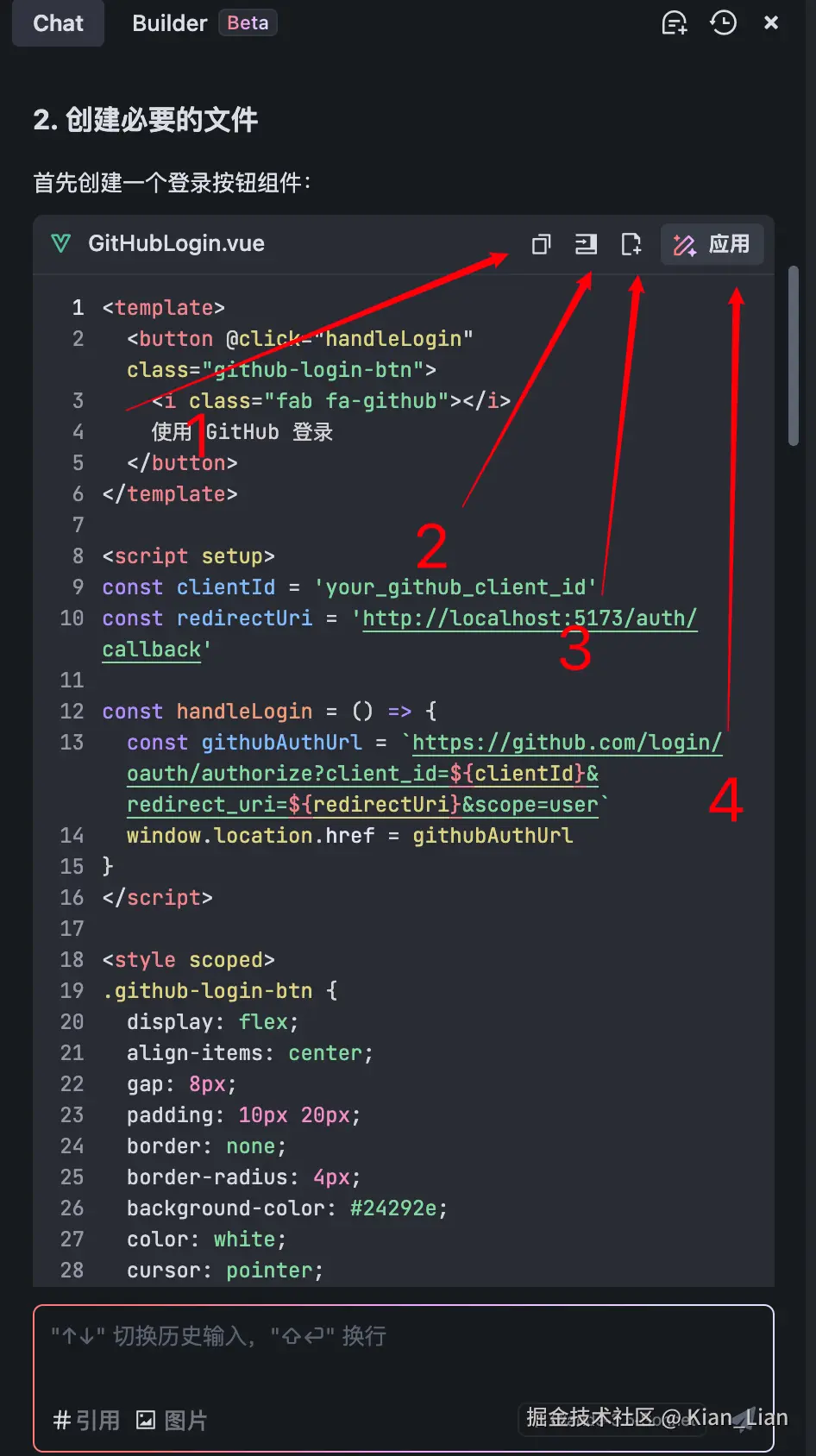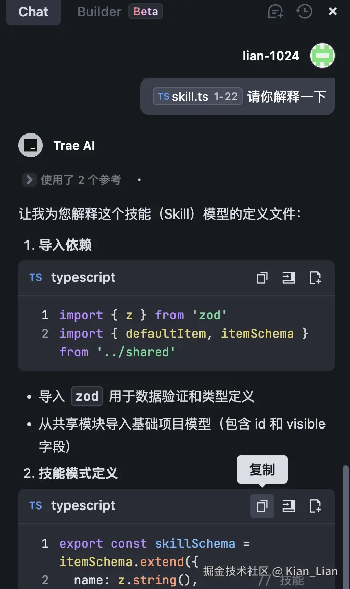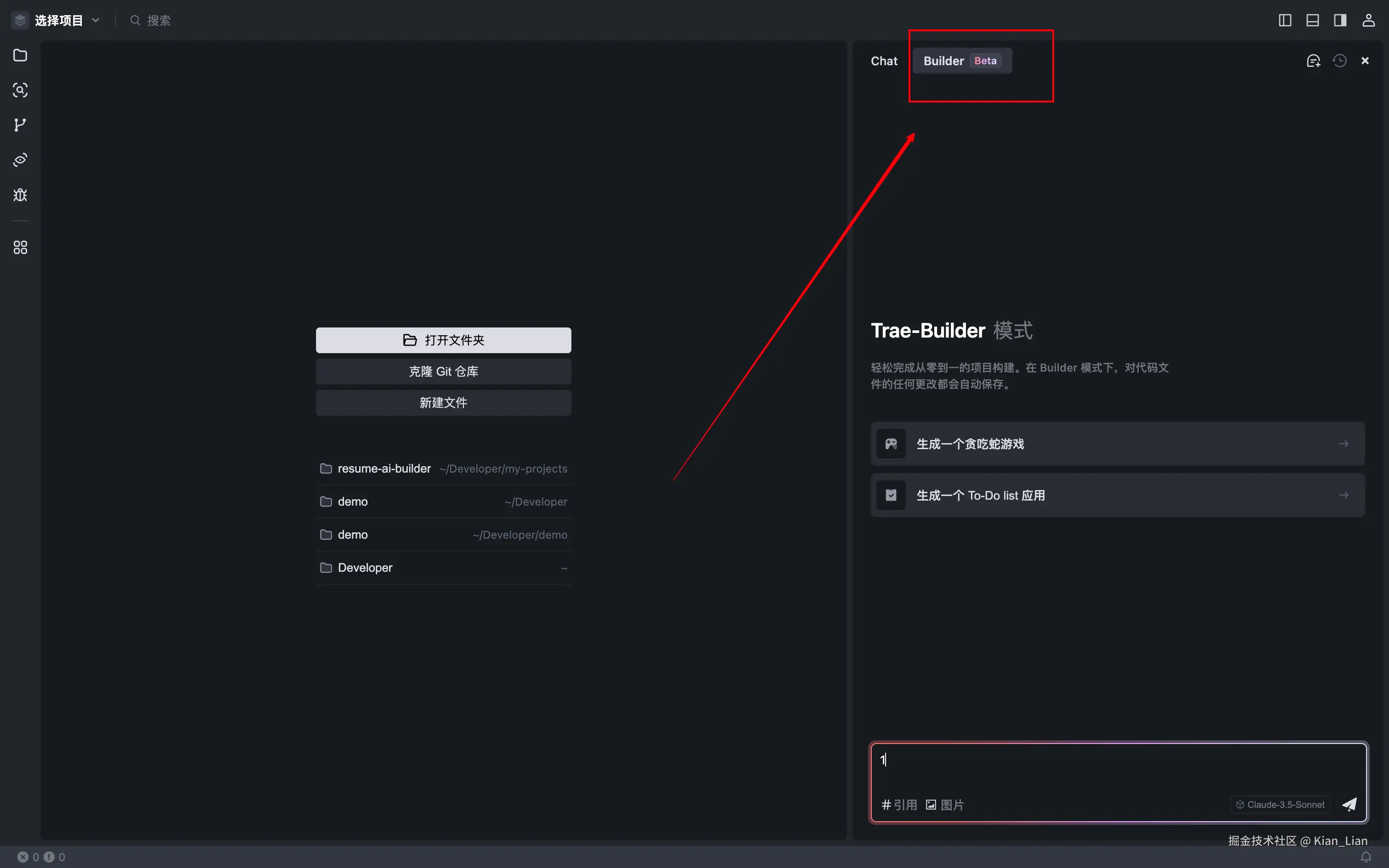Chat模式适合AI问答辅助学习等流程,而Builder模式则不同更像一个程序员帮你写代码,下面我通过一个案例来演示如何使用Builder模式