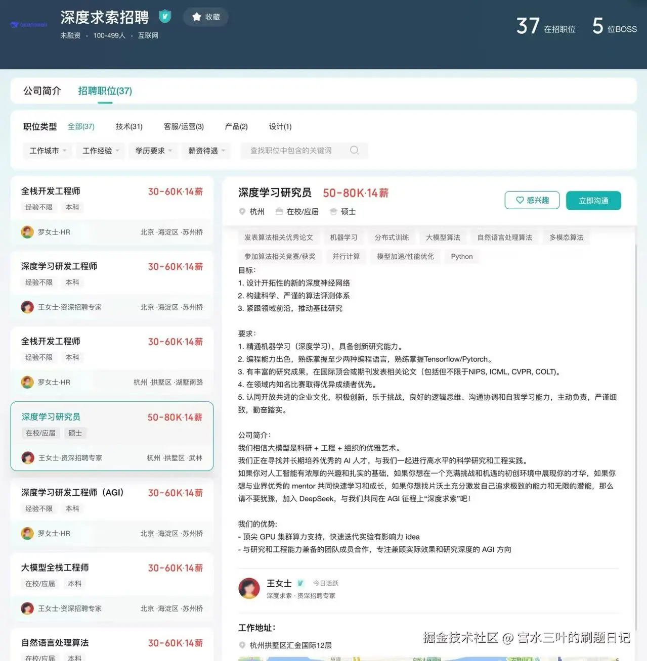 我从招聘网站上找到了关于 DeepSeek 的招聘信息,供大家参考: