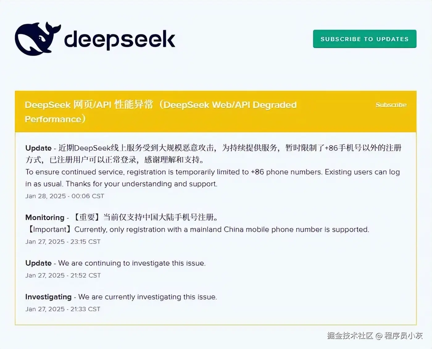 在1月27日开始,DeepSeek的线上服务就开始遭受大规模恶意攻击(DDOS),服务器多次出现卡顿和崩溃。