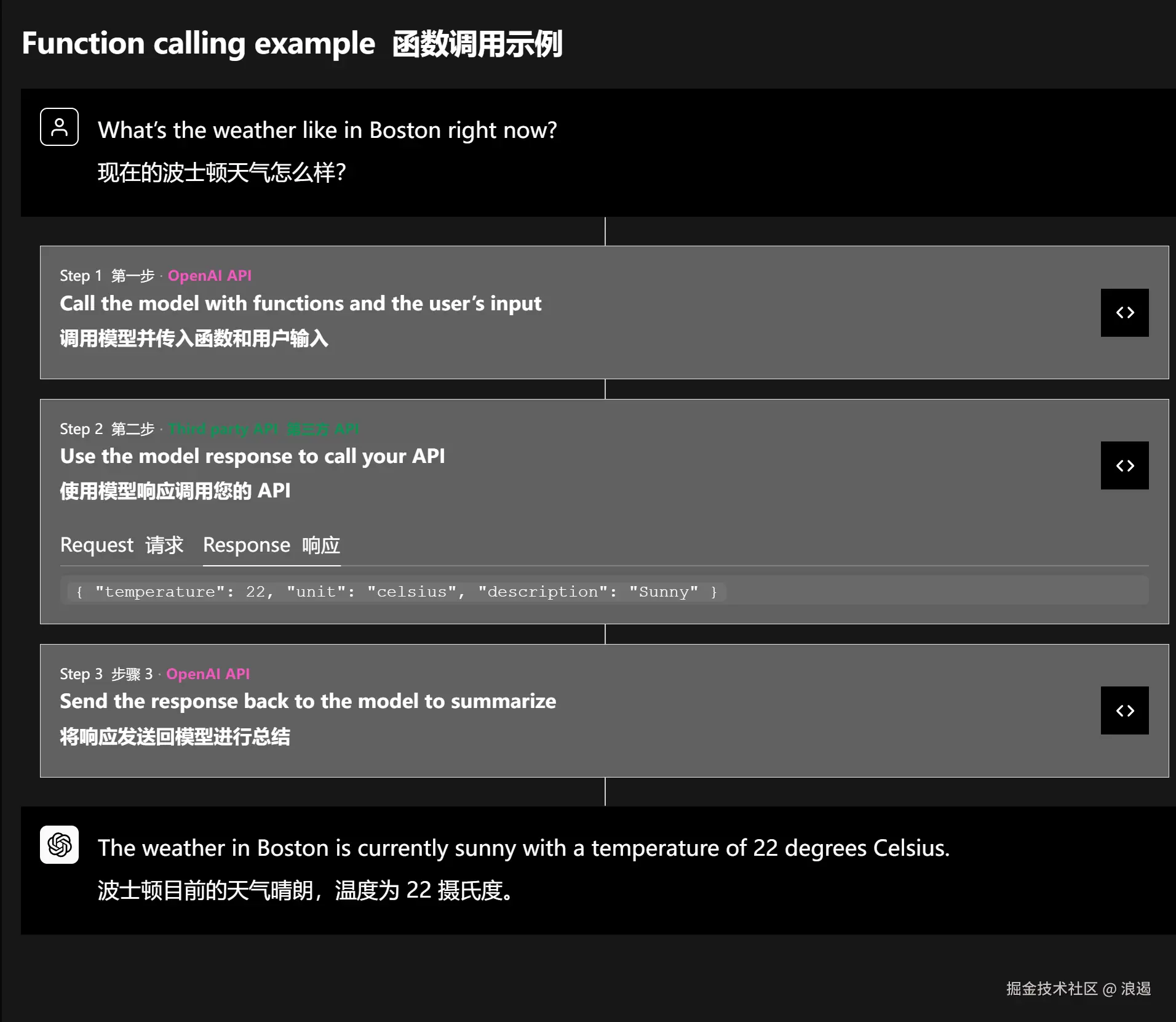底层暂且不去探究 , 了解到 openai 支持 function-calling , 即函数调用 , 可以调用 API ,
