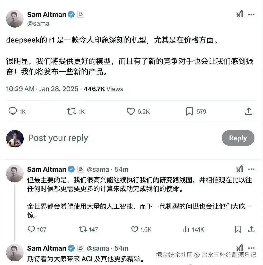 就在刚刚,Open AI 的创始人兼 CEO 正式对回应了 DeepSeek: