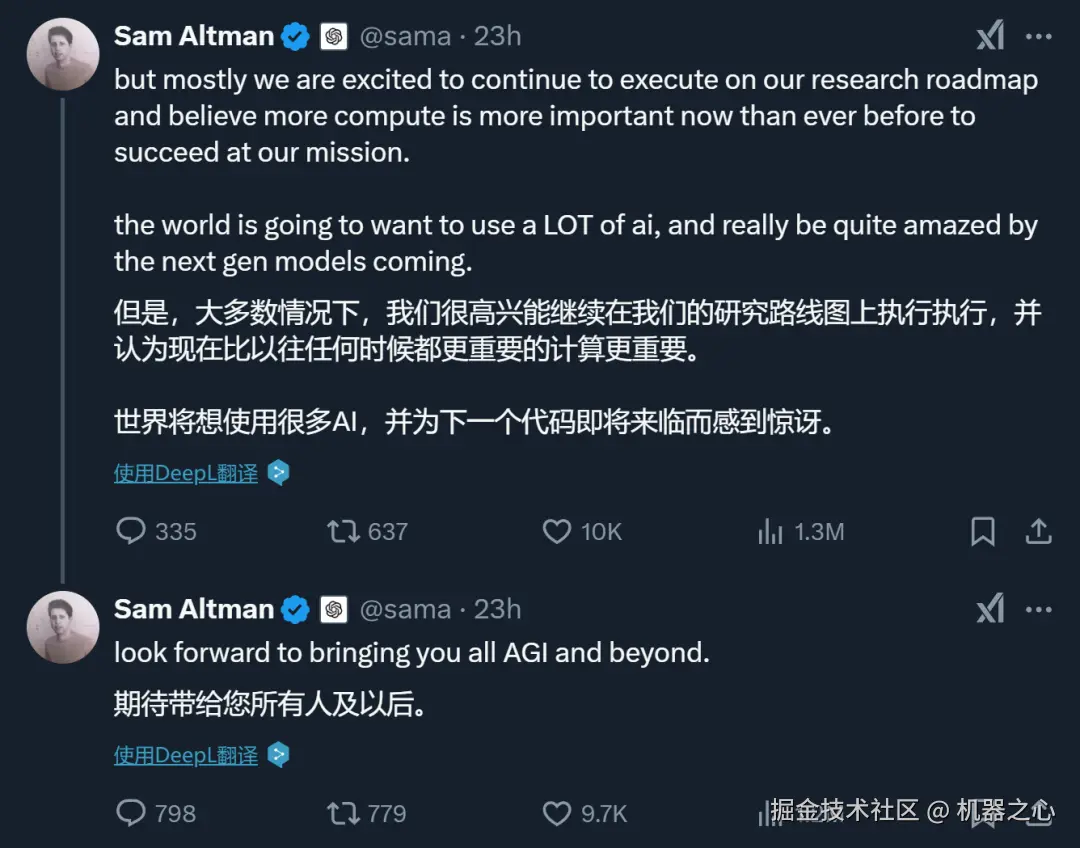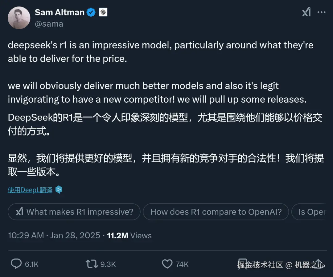 这些成就得到了包括 Sam Altman 在内的 AI 领军人物的肯定。