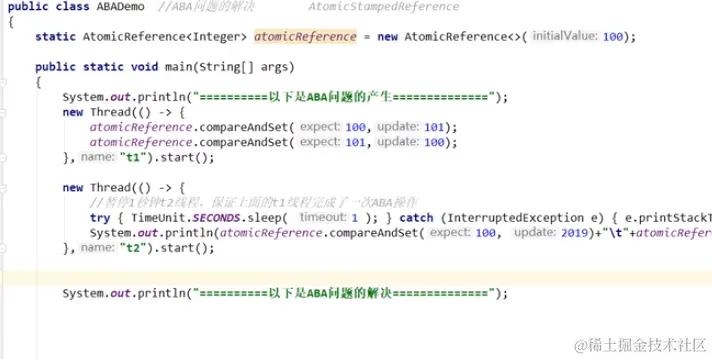 ABA问题的解决: Java提供了AtomicStampedReference来解决。AtomicStampedReference通过包装[E,Integer]的元组来对对象标记版本戳stamp,从而避免ABA问题