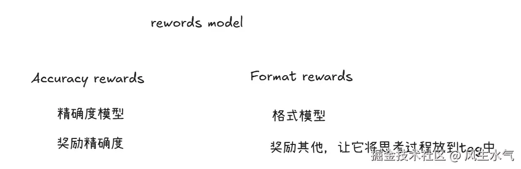 由于使用强化学习来进行训练,因此需要定义奖励模型。本文中前面提到的奖励模型基本都是基于规则的奖励模型,其中包括精确度模型(用于奖励精确度)和格式模型(用于奖励格式)。
