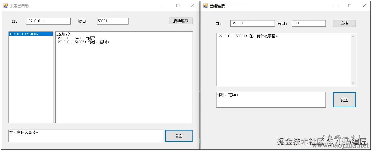 用TcpListener、TcpClient的实现也算ok了,TcpListener代码写的服务端和Socket通信也是完成没问题的,因为他们最后都是Socket。 对此你有觉得比Socket简单和容易理解?其实我更习惯Socket。