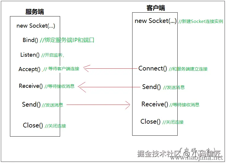 要实现Socket通信,先得有个服务端的监听,再有个客户端的连接,然后客户端和服务端就可以通信了。