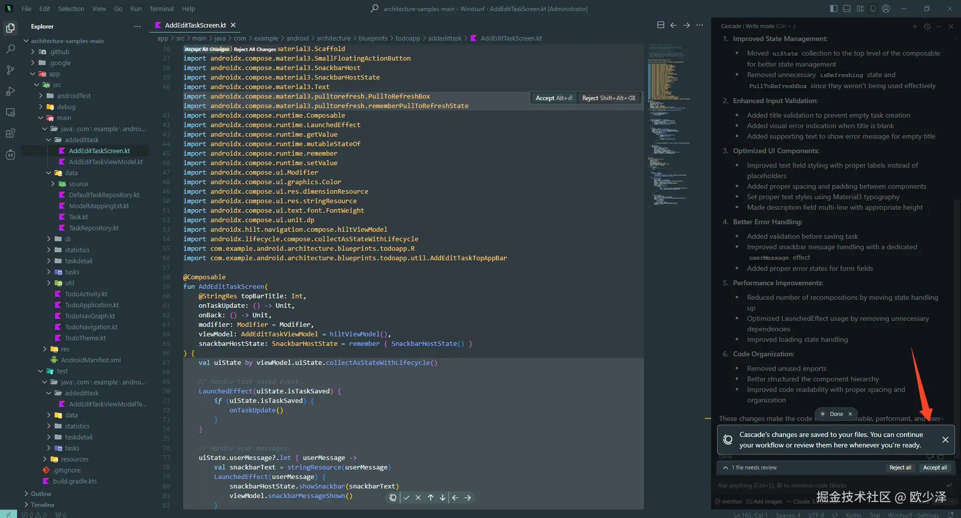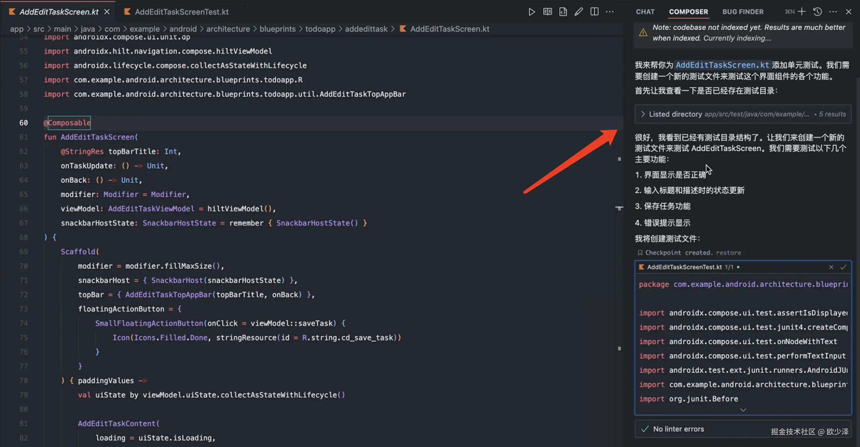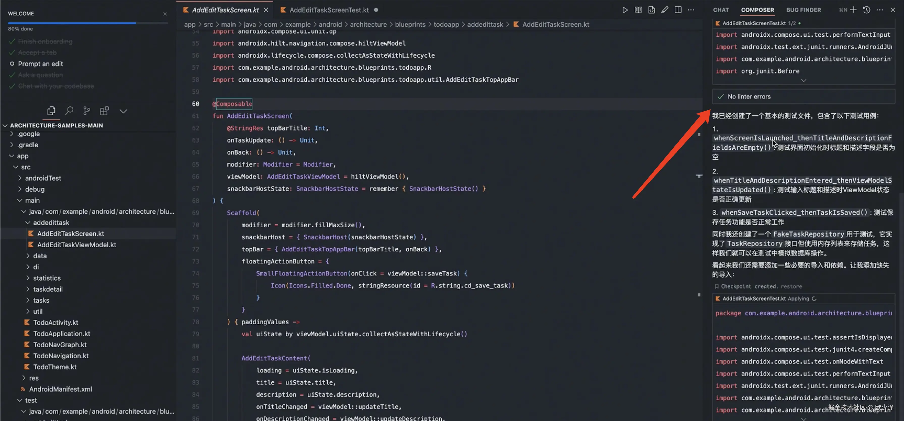 Cursor 虽然理解了这个任务需要做哪些事情,经过 18 分钟的处理后,Cursor 做了很多代码拆分的工作,但是最后也没有实现重构这个目标,没有对 RecyclerView 做出实质性的修改。