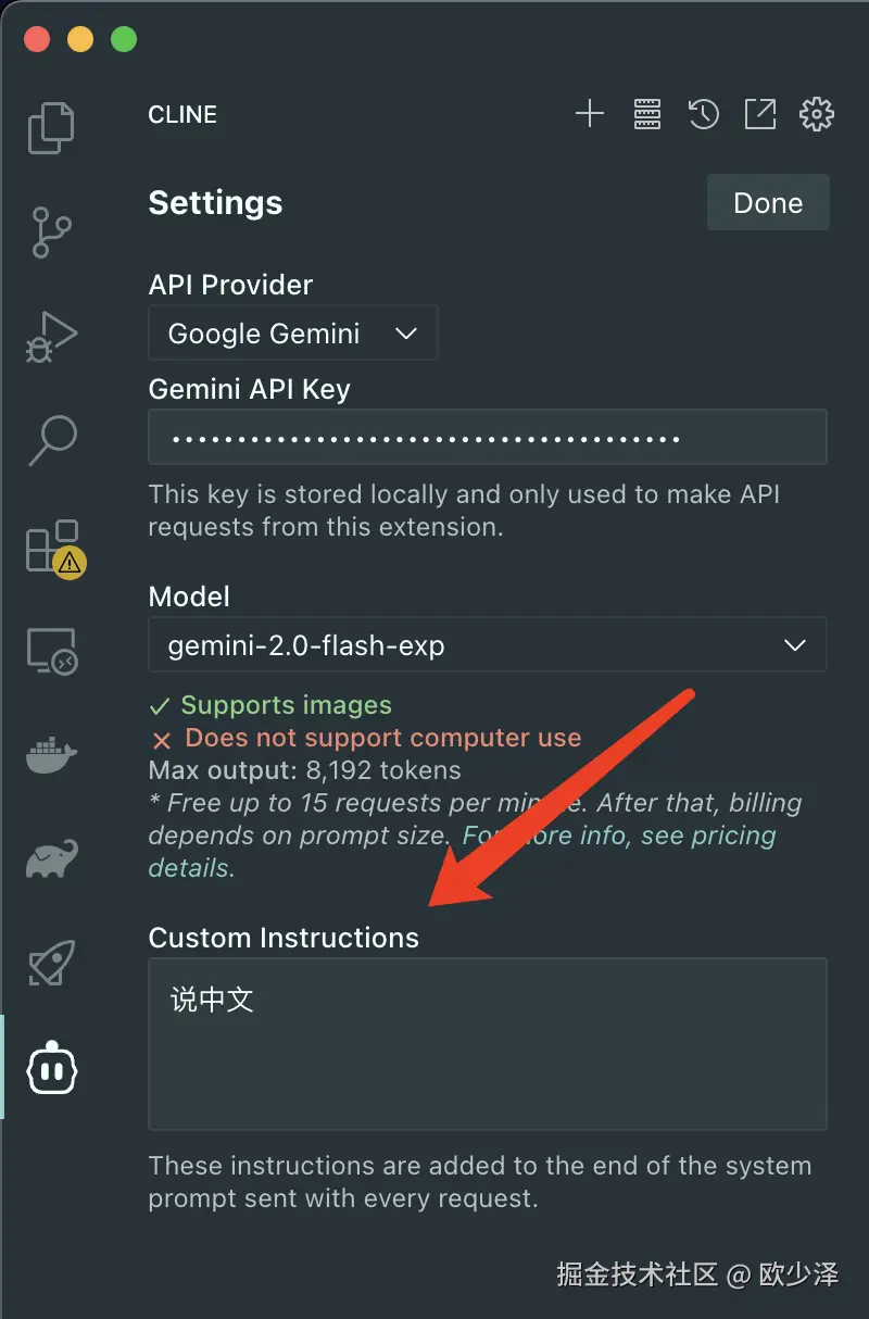 - 如果不考虑信息安全的问题,但是想要有更多自定义设置的话,可以用 Cline + Gemini 的方式使用 AI 编程智能体
