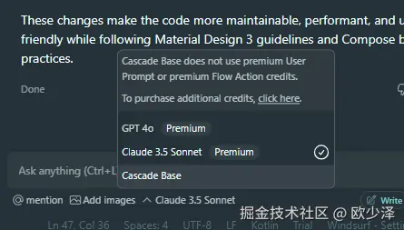 | Winsurf | Codium 公司开发的基于 VS Code 的 AI 编程工具 | 15刀/月(有免费额度) | 1、成本相对 Cursor 较低; | 1、模型选择较少,中文支持不完善; | 对价格比较敏感的开发者 |