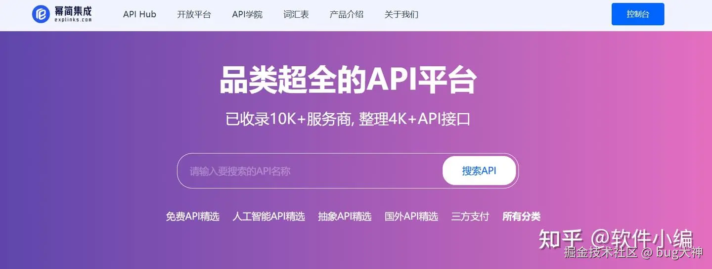 持续更新,汇总全网免费API bug大神 2025-01-30 230 阅读1分钟 幂简集成 网址:www.explinks.com 是一家公司运营的平台,理论上是一个找api的好地方 小小 API 网址:xxapi.cn/ 小小API是一个稳定 快速 的 API 接口服务