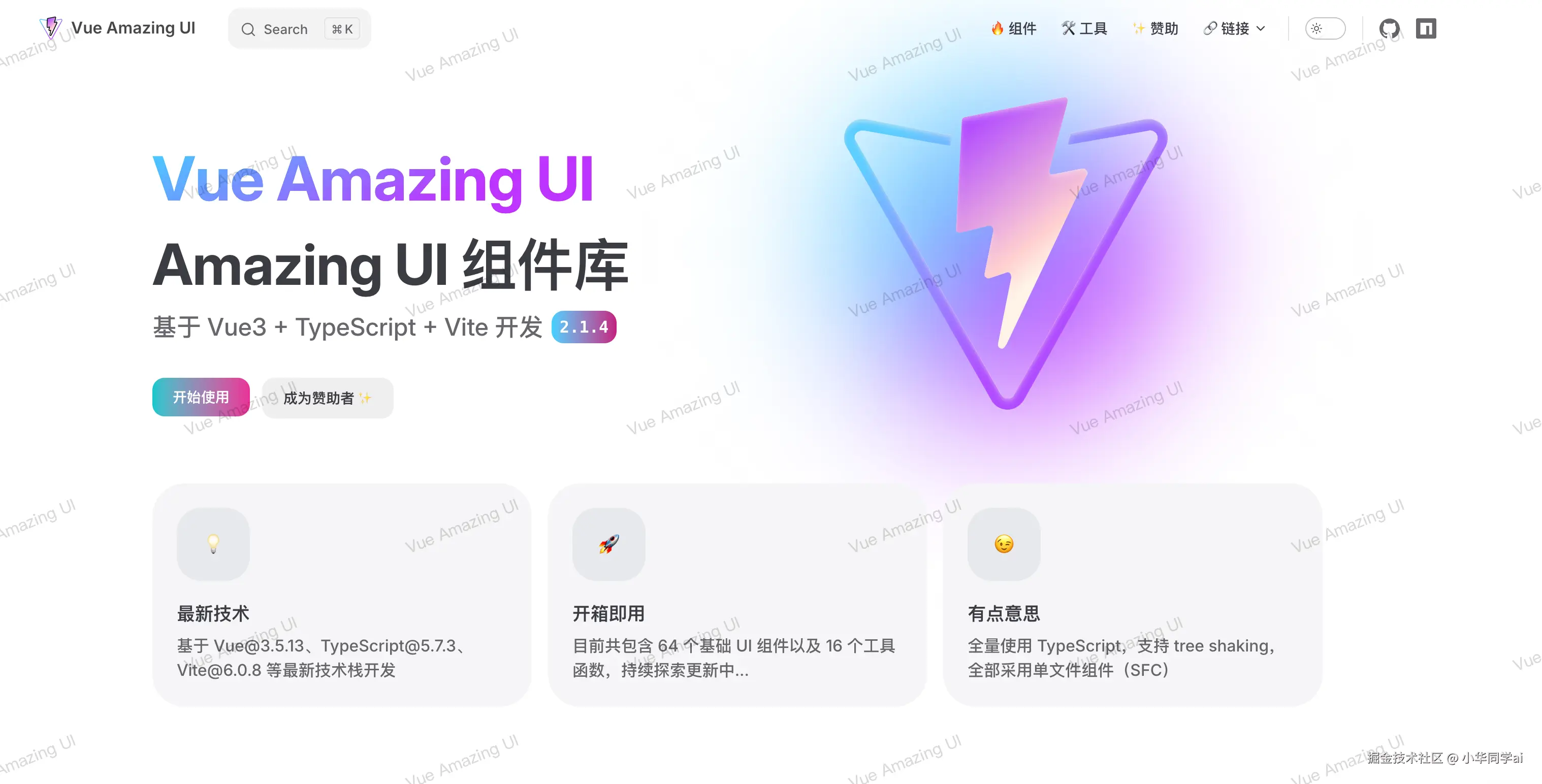 Vue-Amazing-Ui是一个基于Vue.js的开源组件库,旨在为开发者提供一系列实用、美观的组件,助力快速构建出色的用户界面。该项目目前已在Github上开源,受到了许多开发者的关注。