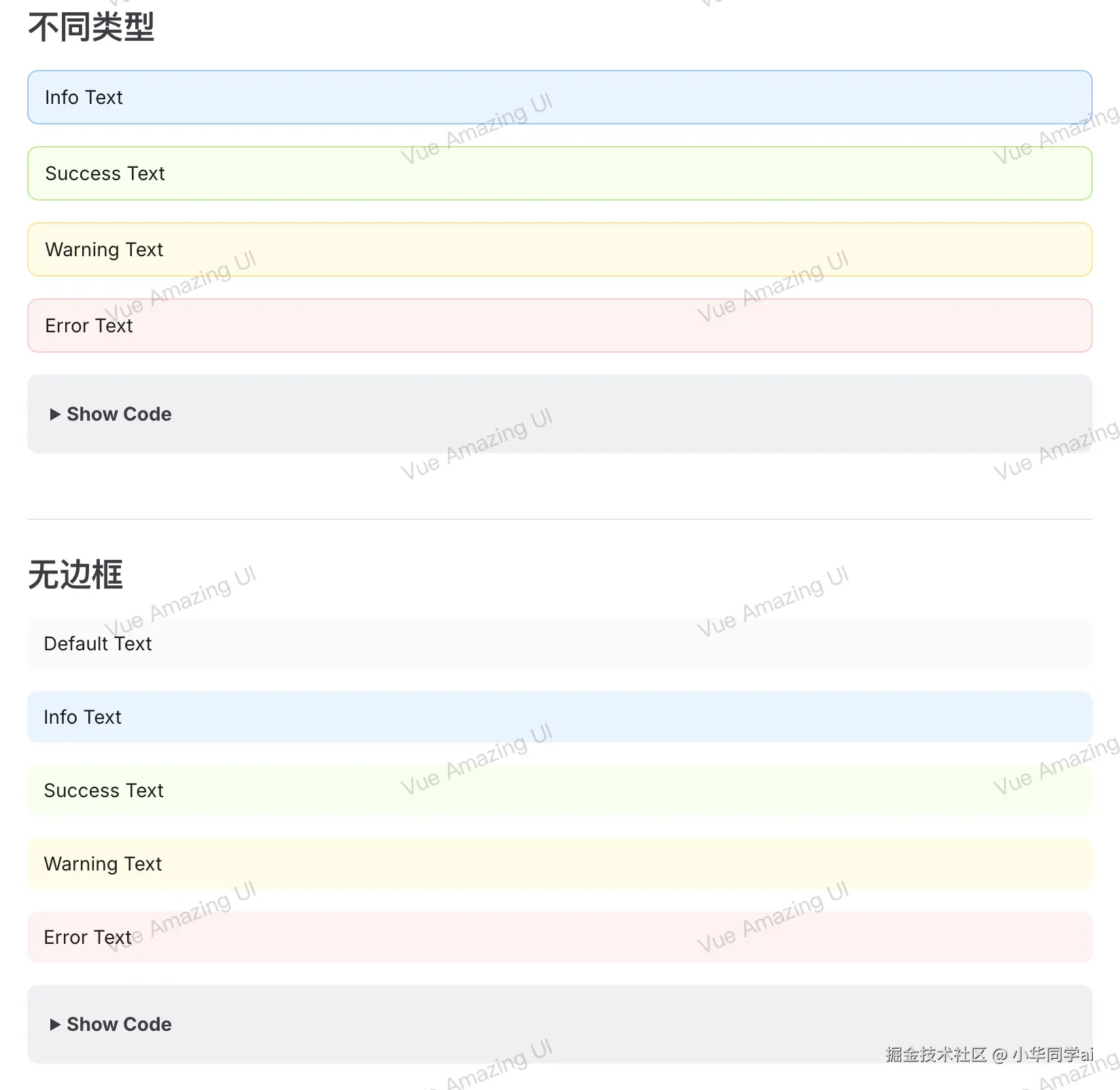 所有类型均可直接从 vue - amazing - ui 中引入使用,无需任何额外安装。例如: