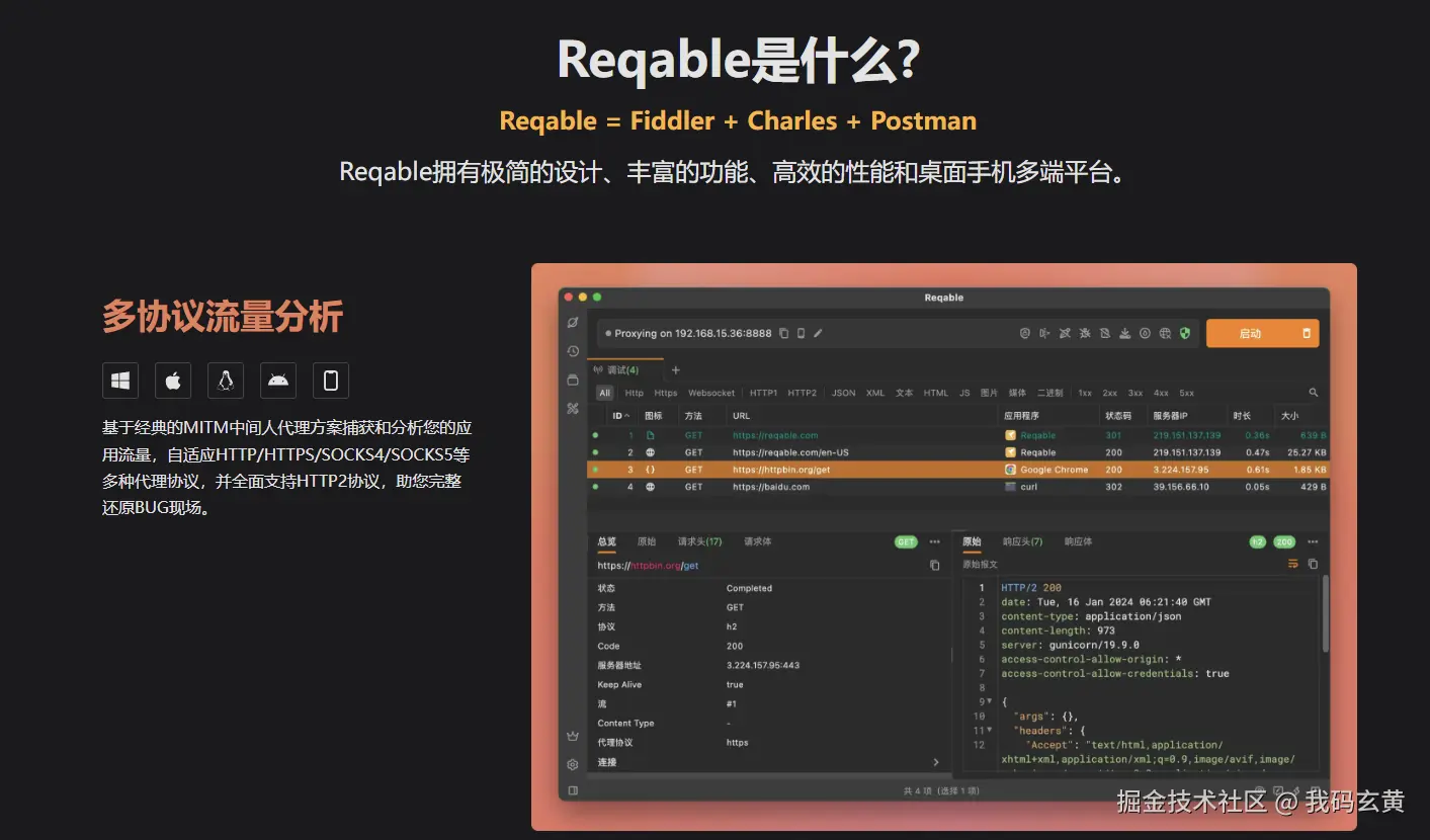 Reqable 是一款兼具简洁设计与强大功能的现代化 API 调试工具。