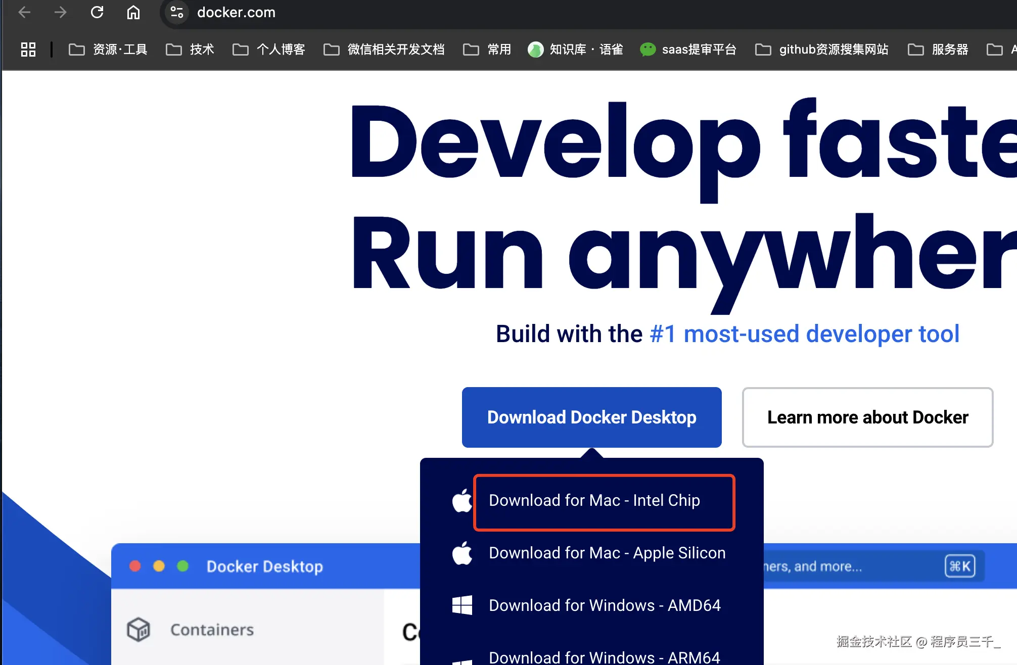 这里,进入Docker的官网,然后在这里下载对应你电脑的版本,全部选择默认的方式进行安装。如果你是第一次使用这个软件,你需要注册登陆一下,ok,我们这里选择一个账号登录进来。